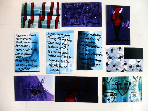 Another page from my Memoir Project Submission. Clown Noses. This is one of my first attempts at concrete poetry. Just thought I’d try something new. I’m not too sure that this page is quite representative of the book as a whole or if it is even a memoir, but I think it is quite an interesting image that makes use of words and imagery.
