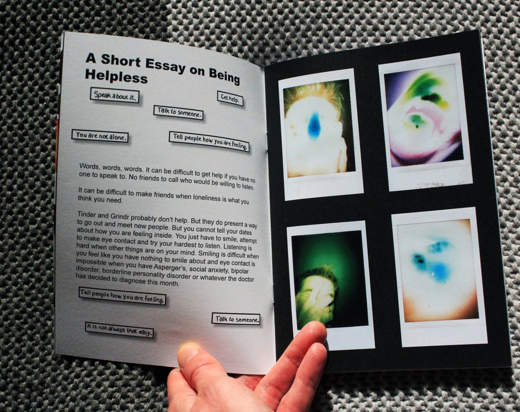It features Polaroid pictures taken over a year long period along with diary entries, essays and short stories. Each story and diary entry presents a queer written perspective on autism and sexuality. The Polaroids show a candid and experimental approach to photography.