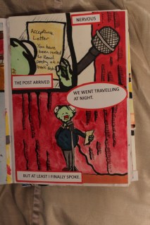 The Sketchbook Project asks artists of all levels to complete a small book with ideas, drawings and sketches. I recently completed my sketchbook and below a preview page can be seen. My book is called ‘Fashion Design For Monsters’. I’ve posted up several pages from this and here is another one. A quick photo taken of one of the pages.