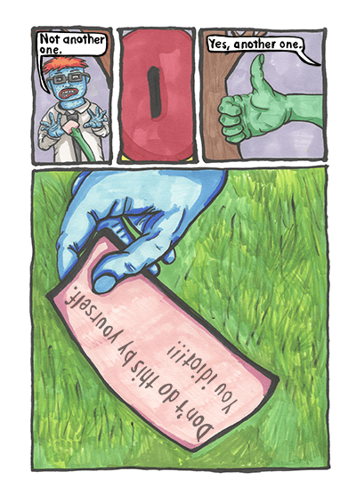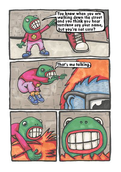 Conversations With My Imaginary Friends is a personal comic book that explores voice hearing and psychosis in an intimate and personal way. The story follows the comic book creator as they speak with the voices in their head and write down what they say. We see how important engaging with mental health is and how this can build strength and confidence. Each voice gives a letter to the protagonist and the reader gets to experience the voices in a unique and visual way.