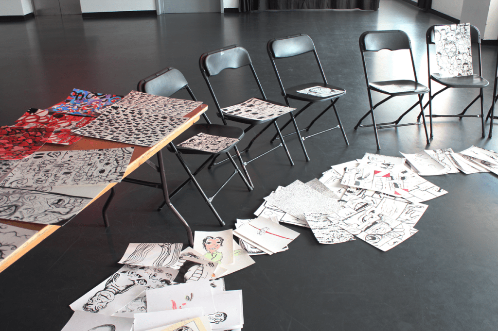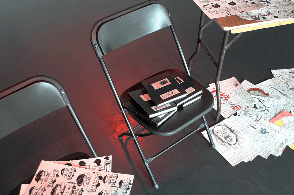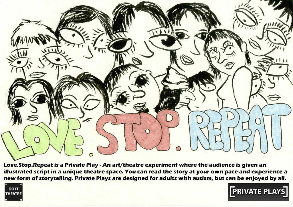Love.Stop.Repeat. was performed on April 18 2015 at the Rich Mix venue in London. It is a Private Play that looks at love and self-belief. The performance involved a small installation, a zine and an audio version of the play. Audience members read the zine in the performance space and viewed the installation.