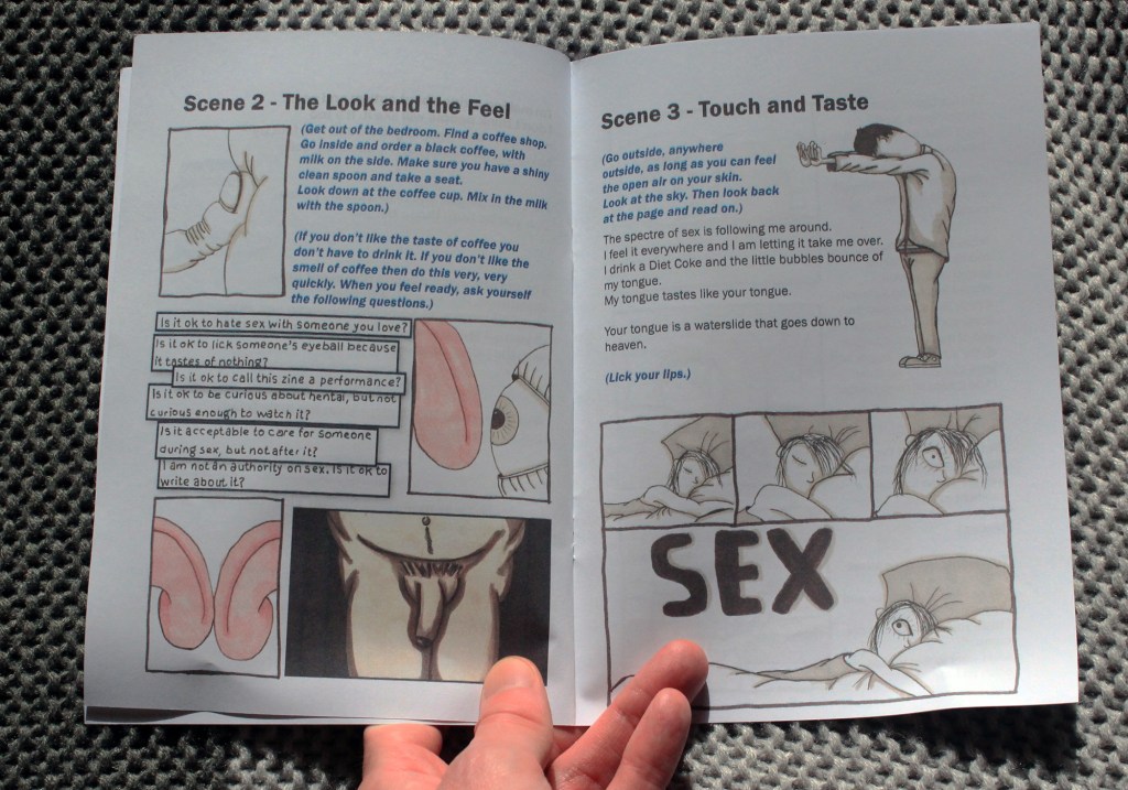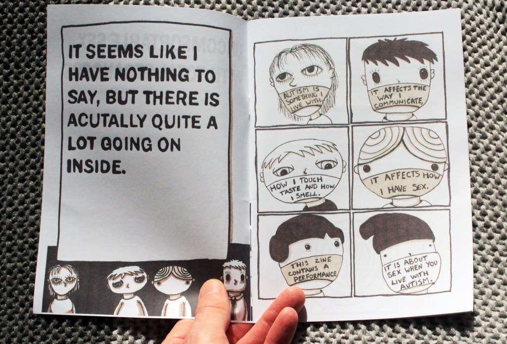 Uncomfortable Sex With Total Strangers is a personal zine that looks at sex when you live with autism. It features illustrations, short stories, comics and a performance script that you can act out.